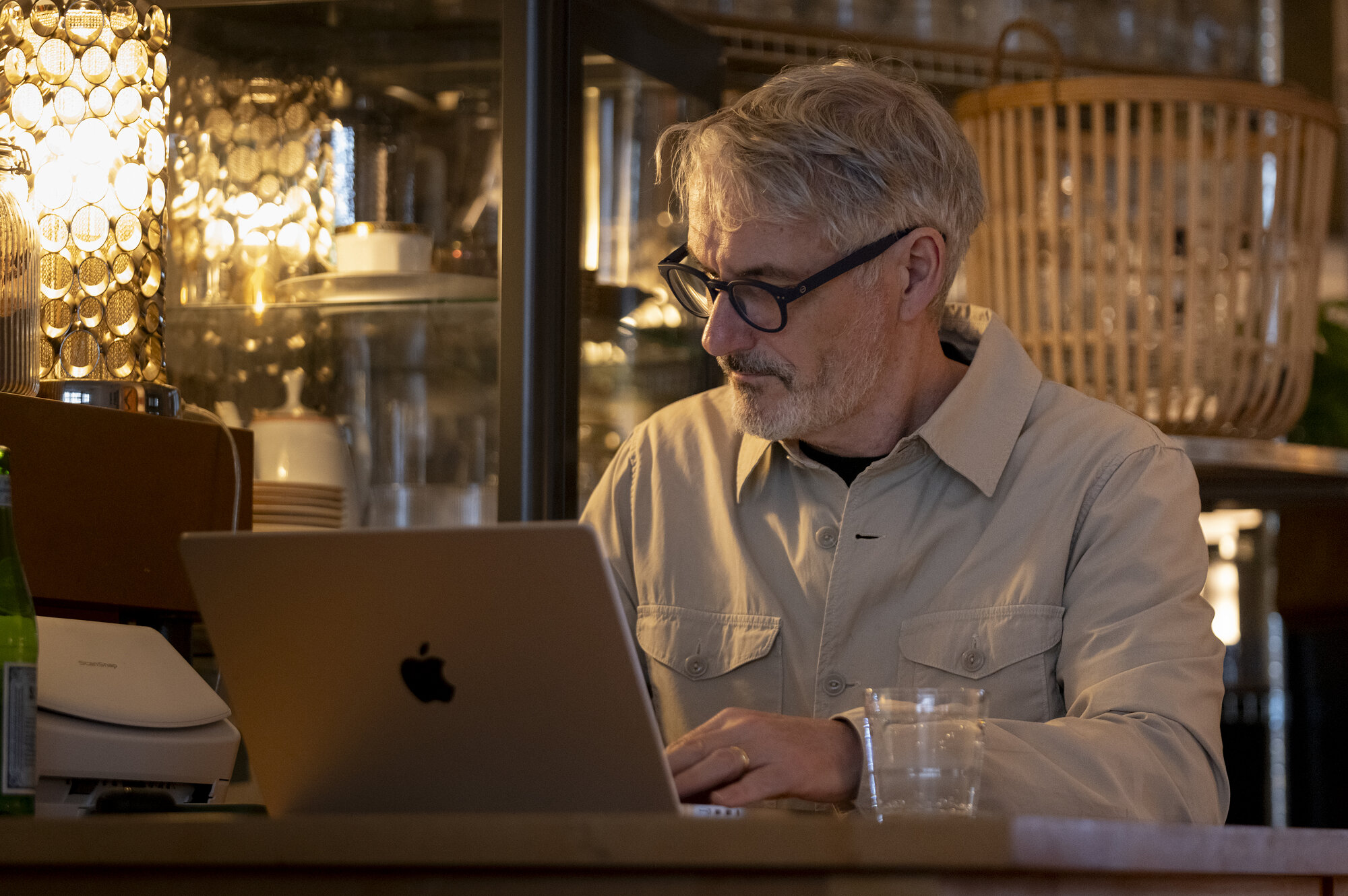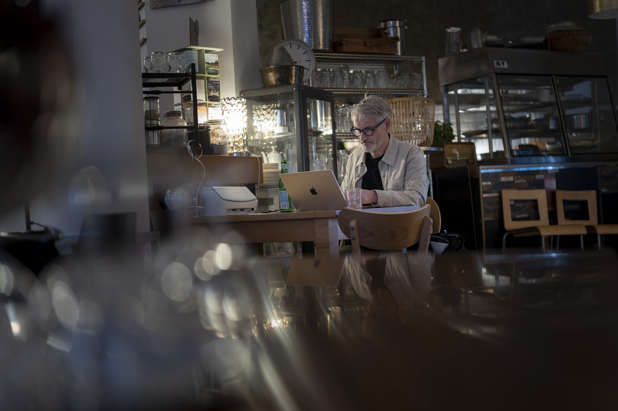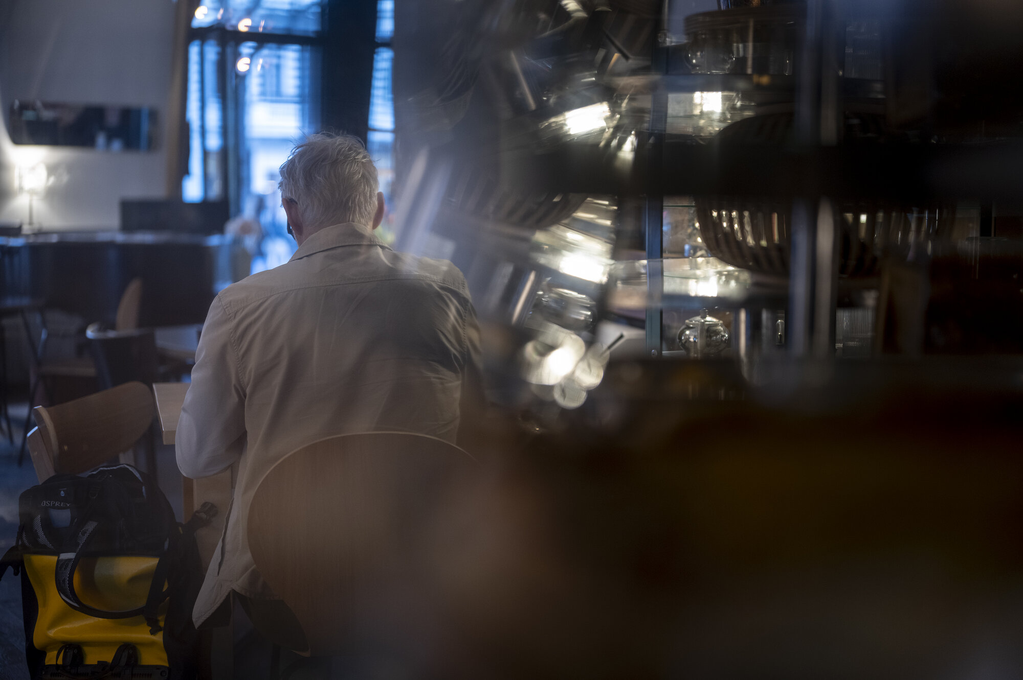 Zu den Bildern: An vielen Vormittagen (und manchmal auch abends) klappt Brian Larkin sein Laptop im "Cafè Klick" am Stuttgarter Platz in Charlottenburg auf - eine kleine Radreise vom Wissenschaftskolleg entfernt.